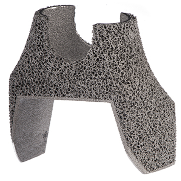 The EPORE® Cones are subdivided into the EPORE® Cones Metaphyseal and the EPORE® Cones Cortical. The cones are characterized by various sizes and designs in order to facilitate an optimal treatment of differently sized bone defects. The design is optimized for use with the implant systems ACS® SC and MUTARS® GenuX® MK. The implants are made out of the highly porous EPORE®-structure, which is perfectly suitable as an ingrowth-structure for bone renewal. The EPORE® Cones are implanted without cement. Subsequently the knee implant is embedded within the cone by using bone cement.