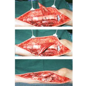 In proximal tibial replacement the tube allows attachment of muscle flaps (e. g. gastrocnemius), the extensor apparatus as well as the patella ligament.