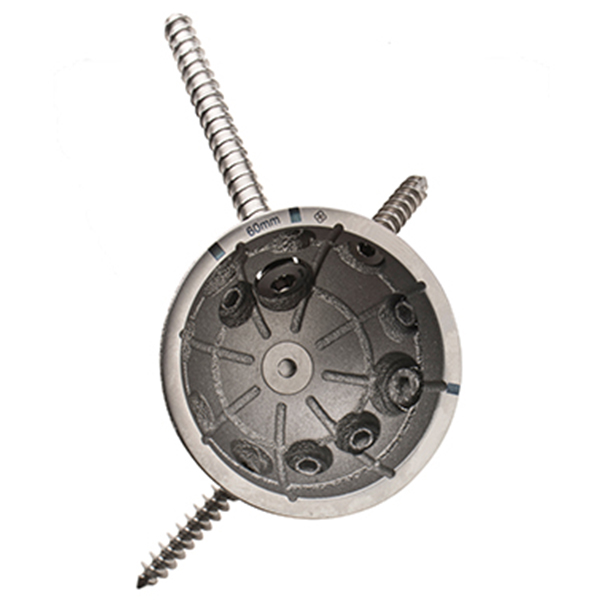 MUTARS® PRS is a cementless spherical with a flattened pole pelvic reconstruction shell used for large cavitary or segmental acetabular defects up to type 3a of Paprosky classification. Bone side with EPORE® structure for a better osseointeration it can be combined with the cemented EcoFit® 2M cup or the cemented PE-cup Mueller II. In addition to nine holes for spongiosa screws flat head Ø 6.5mm (length: 15-80mm), it also has three holes for using a cancellous screw Ø8mm in length 70, 80, 90 or 100mm.